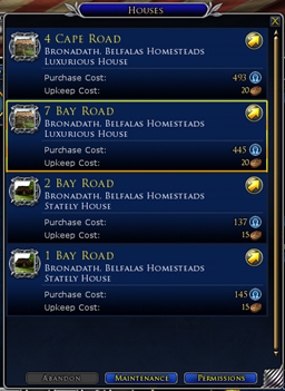 Игроки могут являться владельцами классического дома и дома премиум-класса одновременно! Содружества могут владеть лишь одним домом содружества, так что если вы хотите переехать на мыс Белфаласа, от прежнего дома придётся отказаться.